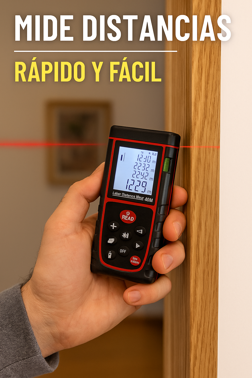 Metro Láser Digital de Alta Precisión - Alcance 40 Metros¡Simplifica tus mediciones con el Metro Láser Digital de 40 metros! Este dispositivo compacto y de alta precisión es la herramienta ideal para profesionales y aficionados que buscan mediciones rápidas, confiables y sin complicaciones. Diseñado con tecnología avanzada, combina funcionalidad y facilidad de uso para proyectos de construcción, decoración, diseño de interiores y más.Características Principales:Alcance de hasta 40 metros: Perfecto para mediciones en espacios amplios como salones, exteriores y proyectos profesionales.Alta precisión: Margen de error mínimo (+/- 2 mm), garantizando resultados confiables en cada uso.Pantalla LCD retroiluminada: Ofrece una lectura clara incluso en condiciones de poca luz.Múltiples funciones: Mide distancia, área, volumen y permite cálculos indirectos mediante el teorema de Pitágoras.Memoria integrada: Guarda las últimas mediciones para facilitar el acceso y la comparación.Diseño compacto y portátil: Cabe fácilmente en tu bolsillo o bolso de herramientas.Beneficios del Producto:Ahorra tiempo y esfuerzo: Obtén mediciones instantáneas sin necesidad de cintas métricas convencionales.Versatilidad en el trabajo: Ideal para uso en interiores y exteriores, adaptándose a cualquier proyecto.Facilidad de uso: Operación con botones intuitivos y configuración rápida.Precisión profesional: Confía en sus resultados exactos para planificar proyectos con detalle.Durabilidad garantizada: Materiales resistentes que soportan el uso continuo en el sitio de trabajo.Especificaciones Adicionales:Rango de medición: 0,05 m a 40 m.Unidades de medición: Metros, pies y pulgadas.Alimentación: Funciona con pilas AAA (incluidas en el empaque).Dimensiones: Compacto y ligero, ideal para llevar a cualquier lugar.Incluye: Metro láser, manual de usuario, baterías y estuche protector.Aplicaciones del Metro Láser:Medición de áreas y volúmenes para proyectos de construcción o renovación.Planificación de diseños en interiores y exteriores.Supervisión de trabajos arquitectónicos con alta precisión.Perfecto para decoradores, arquitectos, ingenieros y entusiastas del bricolaje.Este Metro Láser Digital de 40 metros es la solución inteligente para quienes buscan precisión, rapidez y portabilidad en una herramienta confiable. 🎯✨ ¡Transforma la forma en que realizas tus mediciones y lleva tus proyectos al siguiente nivel!
